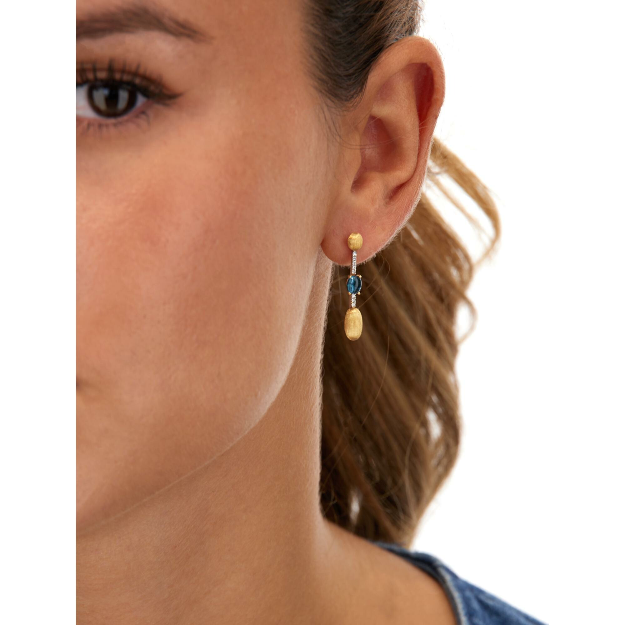 Dancing Azure Boucles d'oreilles Nanis Dancing Azure en or jaune, diamants et topaze Bleu London